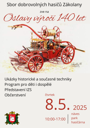 Přijďte s námi oslavit 140 let Sboru dobrovolných hasičů Zákolany!