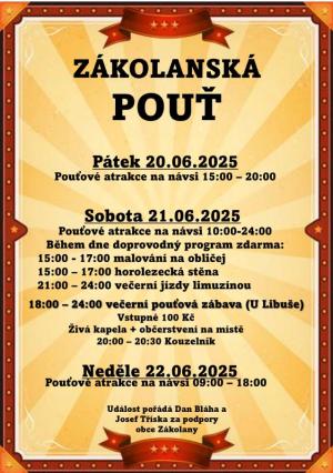 dovolujeme si vás pozvat na tradiční Zákolanskou pouť, kterou pro vás pořádáme ve dnech 20. - 22. června 2025