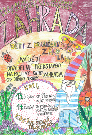 ZAHRADA, které uvádějí děti z DRAMAŤÁKU ZÁKOLANY na motivy knihy Jiřího Trnky.