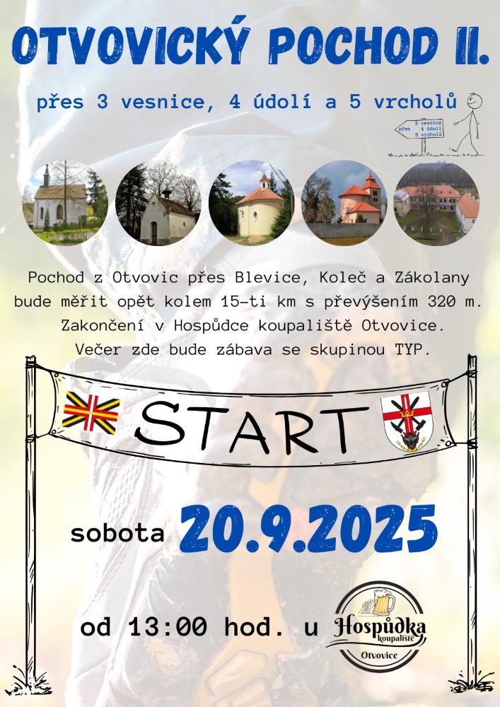 Start ve 13:00 u hospůdky u koupaliště v Otvovicích.